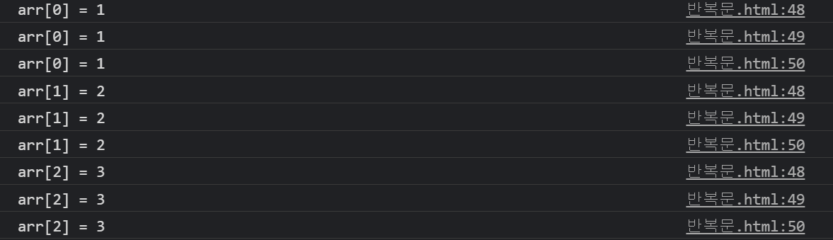 - for of: 값을 가져와서 활용하는 방법(자바의 향상된 for문)