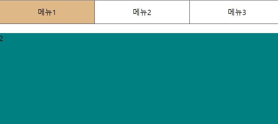 마우스호버하면 색들어가고, 메뉴1번만 기본보이다가 2,3을 누르게될 경우에는 해당 내용이 그 위로 보여지게 함