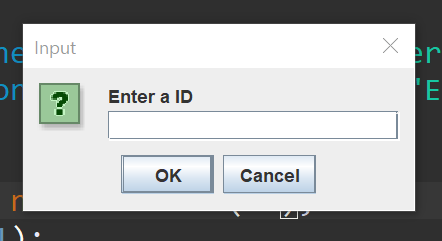 JOptionPane.showInputDialog("Enter a ID");