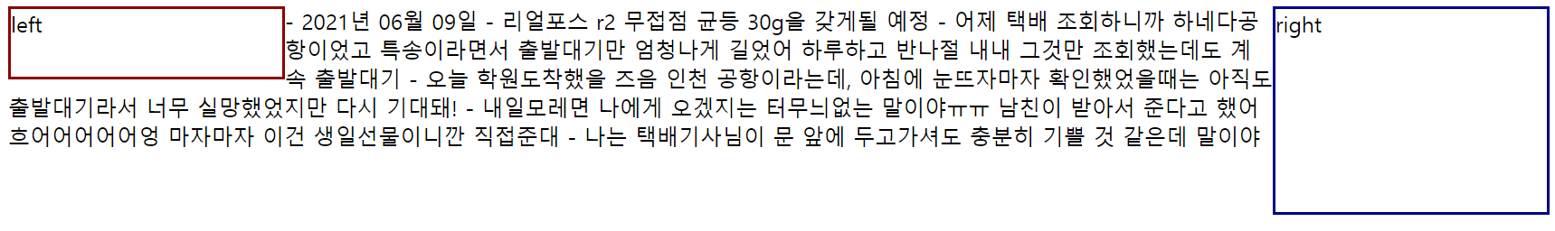 clear:right; (오른쪽박스가 끝나는 지점부터 글자를 나열)